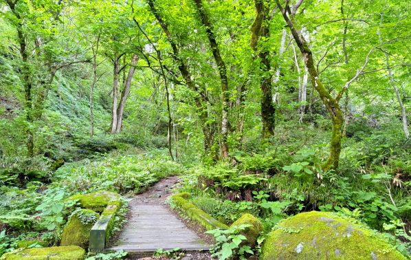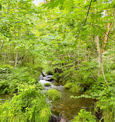 ここは、ミネラル濾過された清らかな水が流れるブナ林の景色が広がり、四季折々の自然の魅力を満喫できます。