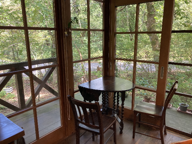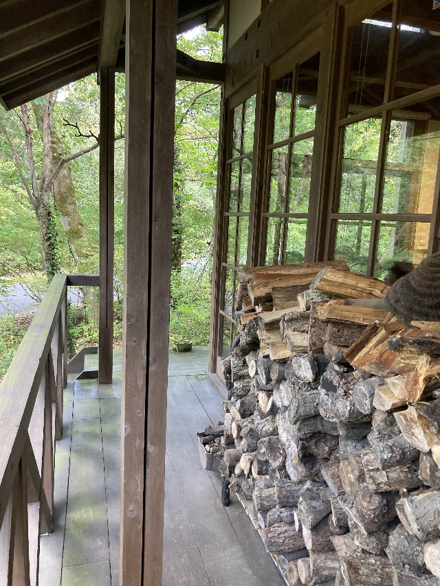 木々の間から窓越しに差し込む光は薪ストーブがあるぬくもりが広がる部屋を照らす。