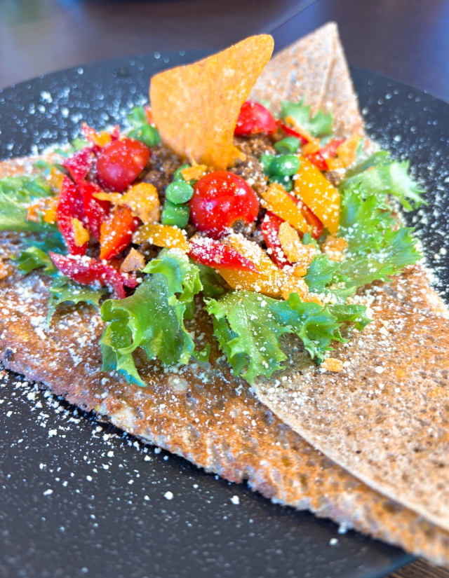 大山鳥のカレーガレットと本日の日替わりガレットを頂きました!地元産のそば粉(大山小麦)を使用したガレットはモチモチ感があって最高でした!