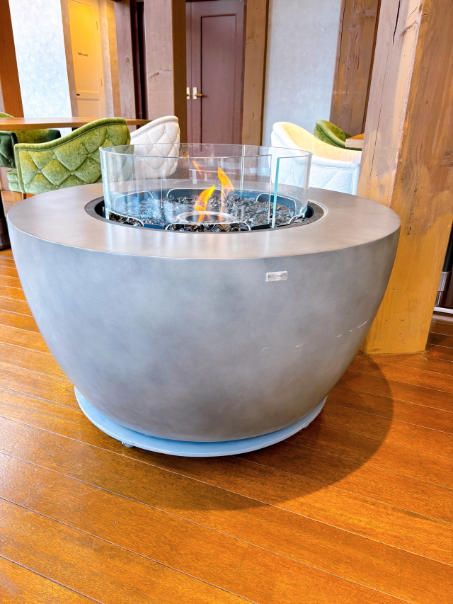 窓の外に映っているパラソルと椅子があるテーブルがワンコ席となってます。