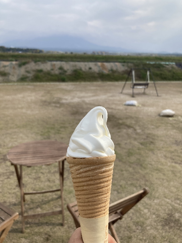 2階の展望席は晴れた日には大山が一望できます!思わず富士山のような~大山をバックに記念撮影!この日は少し風があり大山に雲がかかっていましたが、雲の流れの速さにびっくりしました★