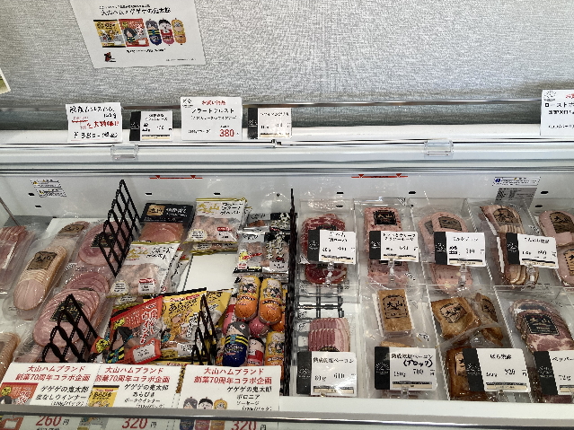 併設の大山ハム直販場ではハムやベーコン、ウインナーのセット売りが安く!店舗には出ない切り落とし品がとにかく安い!地元の人はみんな何を買うか迷うくらい安いと人気のお店。