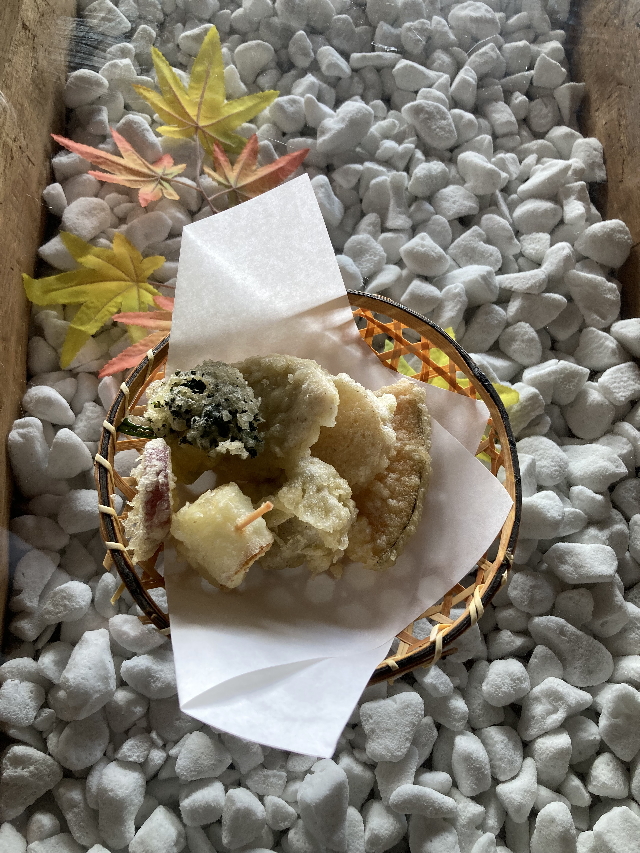 自家栽培のそばを自家製粉し、打ち立て湯が仕立てを提供しています。近くの山で採れた山菜や自家製の無農薬野菜を使った天ぷらや煮物、和え物なども楽しめます。