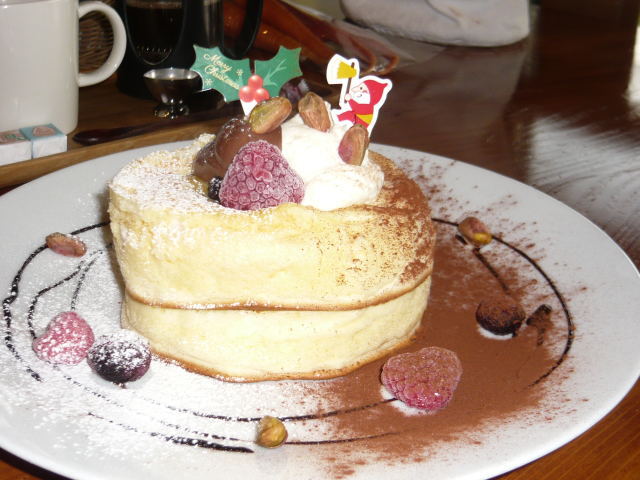 季節のパンケーキは来るたびに注目でオーダー受けてからメレンゲを作り1枚ずつ丁寧に手作りで焼き上げるパンケーキ