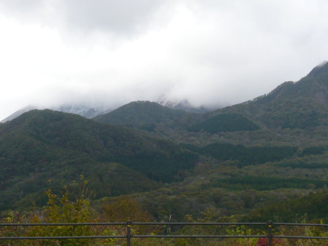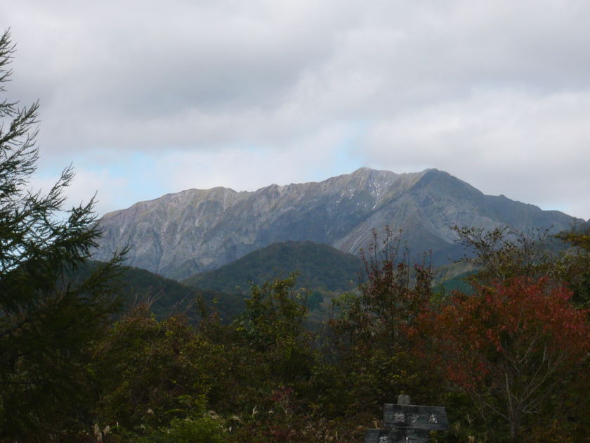 鬼女台から大山 10月20日午後12時撮影 天候曇り 気温10度 紅葉にはもう少し時間がかかりそうです。大山の初冠雪がしているようです。