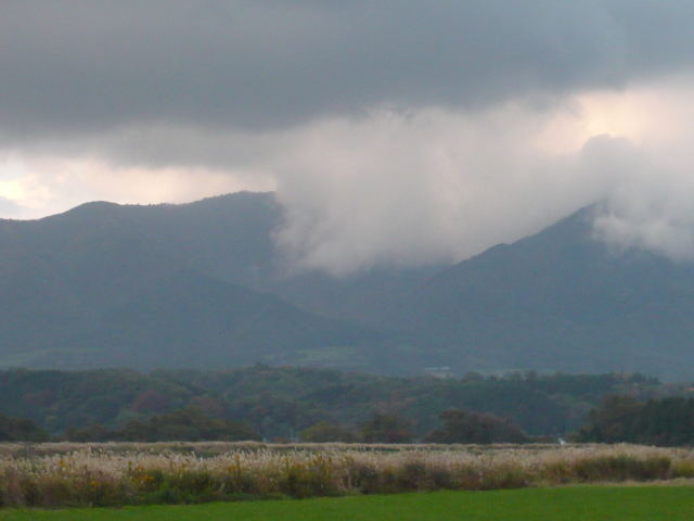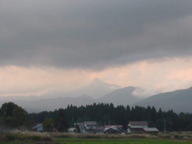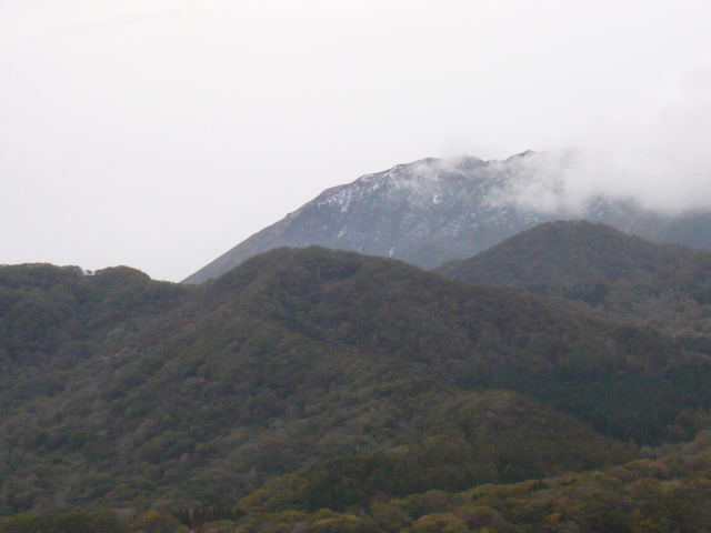 鬼女台から大山 10月21日午後4時撮影 天候曇り 気温6度 紅葉にはもう少し時間がかかりそうです。大山の初冠雪がしているようです。