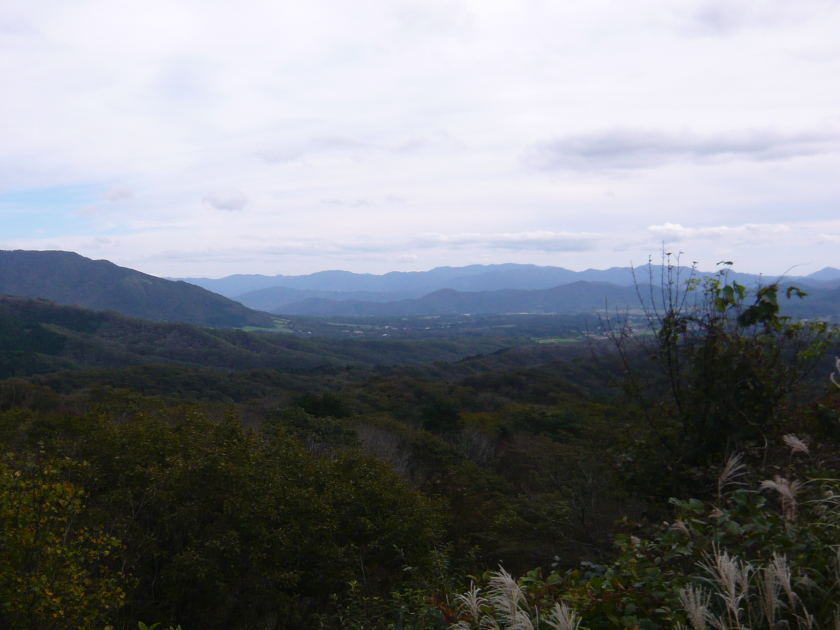 鬼女台から蒜山 10月23日午後2時撮影 天候晴れ 気温8度 紅葉にはもう少し時間がかかりそうです。まだまだ緑です。