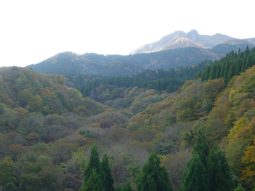 鬼女台(きめんだい)は標高800mに位置してます。鳥取県と岡山県の県境付近である展望休憩所から蒜山や大山の広がる壮大で美しい景色は大人気。毎年10月下旬~11月上旬頃に紅葉した蒜山と大山が一望できるてブナやナラの原生林を眺める事ができます。
